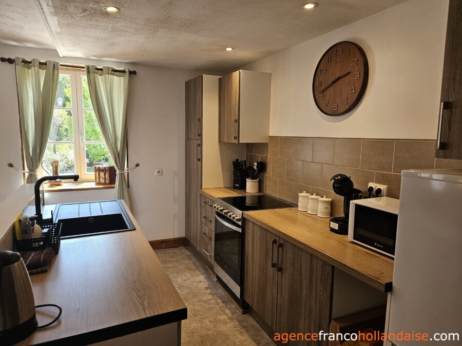 De 2e woning staat naast de hoofdwoning (voormalige schuur). Het heeft een ruime keuken, aparte woonkamer met houtkachel, douche en toilet op begane grond. Op de verdieping is één slaapkamer met eigen badkamer en toilet. Ook vanuit deze woning heb je toegang tot de gezamenlijke tuin met zwembad.
