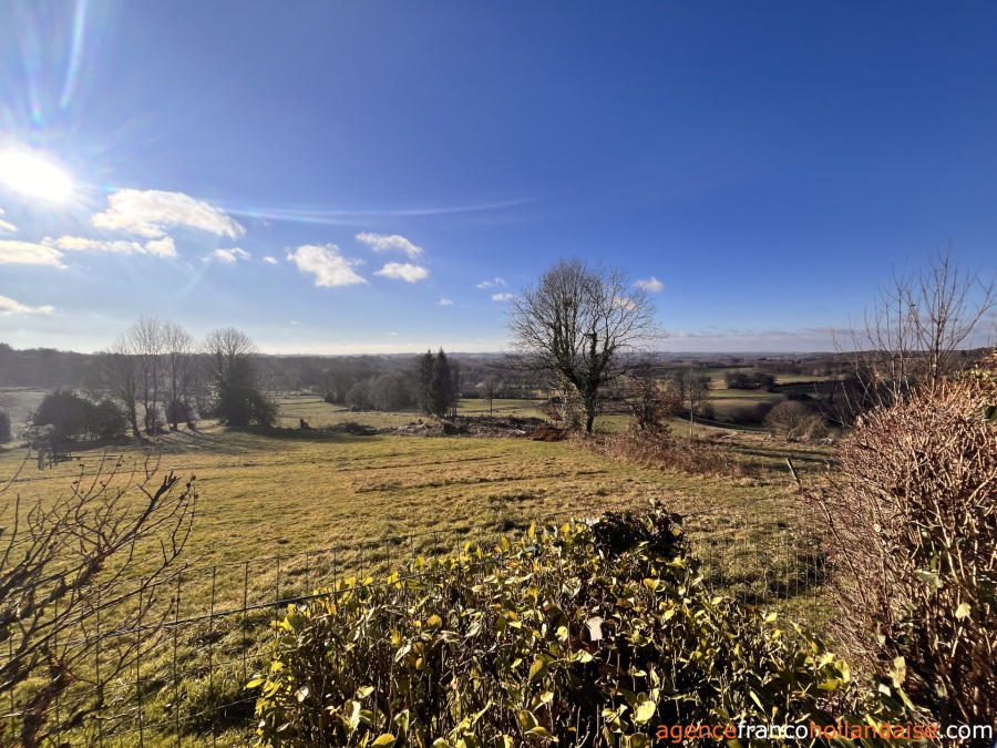 Het terrein is iets meer dan 600 m² groot en bestaat uit een kleine tuin aan de voorkant en een volledig omheind grasveld aan de achterkant met een grote dennenboom. En met een mooi uitzicht over de glooiende weilanden.