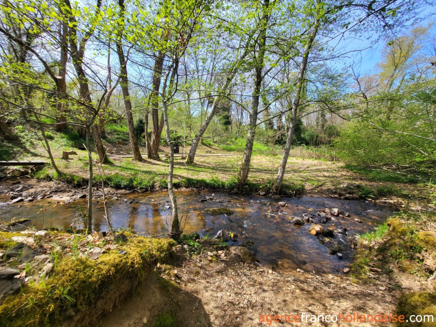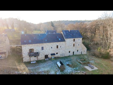 Op een idyllische en vrij gelegen locatie bevindt zich deze prachtige, authentieke voormalige watermolen. De gebouwen zijn met zorg en smaak gerenoveerd, waarbij karakter en modern wooncomfort perfect zijn gecombineerd. Het geheel omvat maar liefst 355 m² woonoppervlak, gelegen op 2,2 hectare eigen grond, met een eigen rivier en een adembenemend uitzicht over het omliggende landschap.