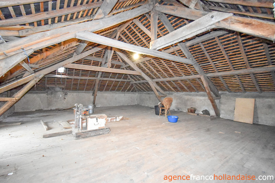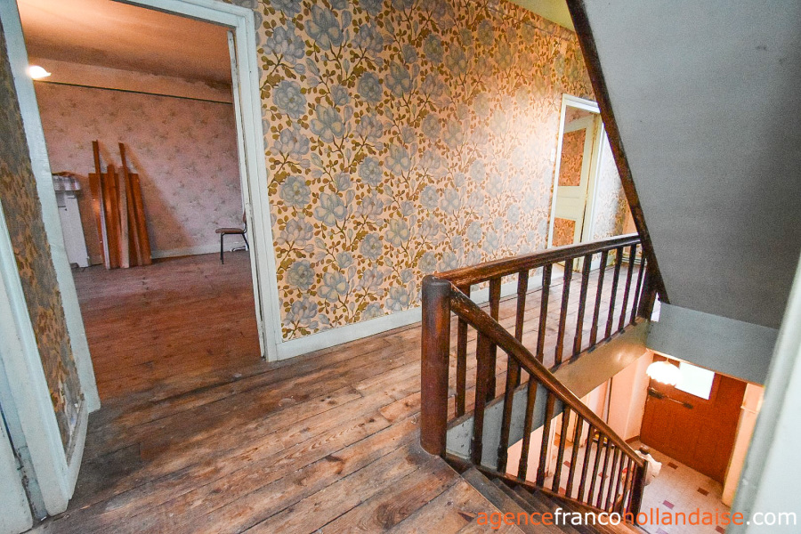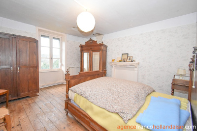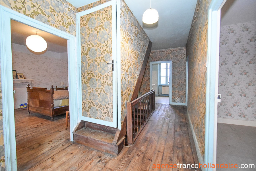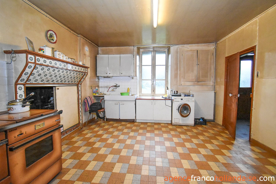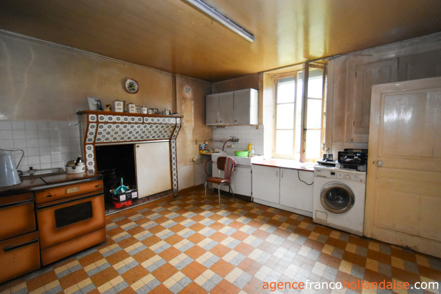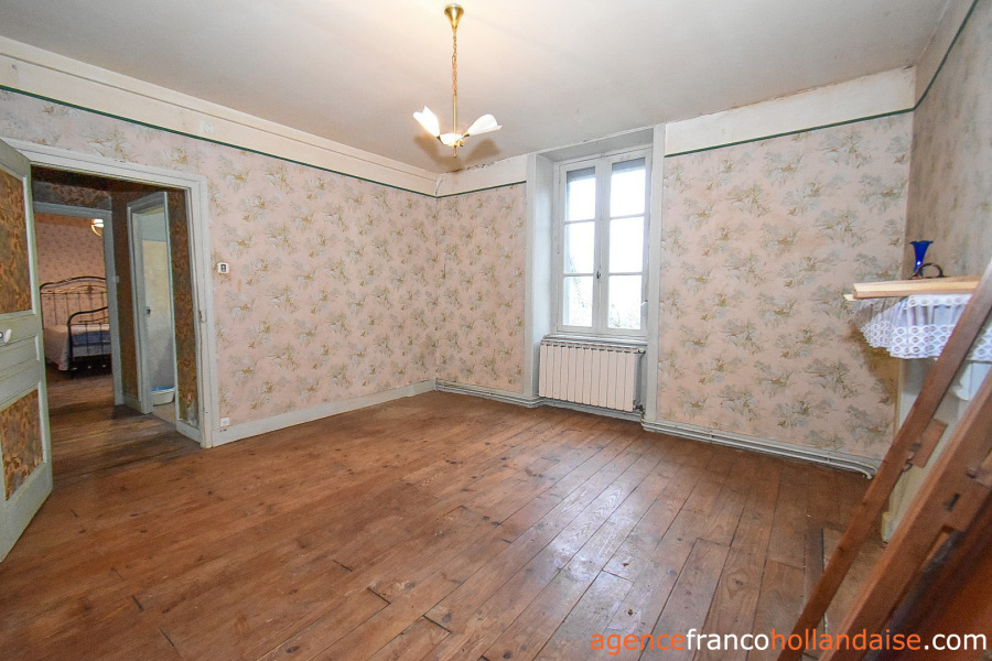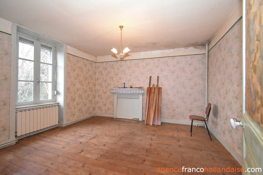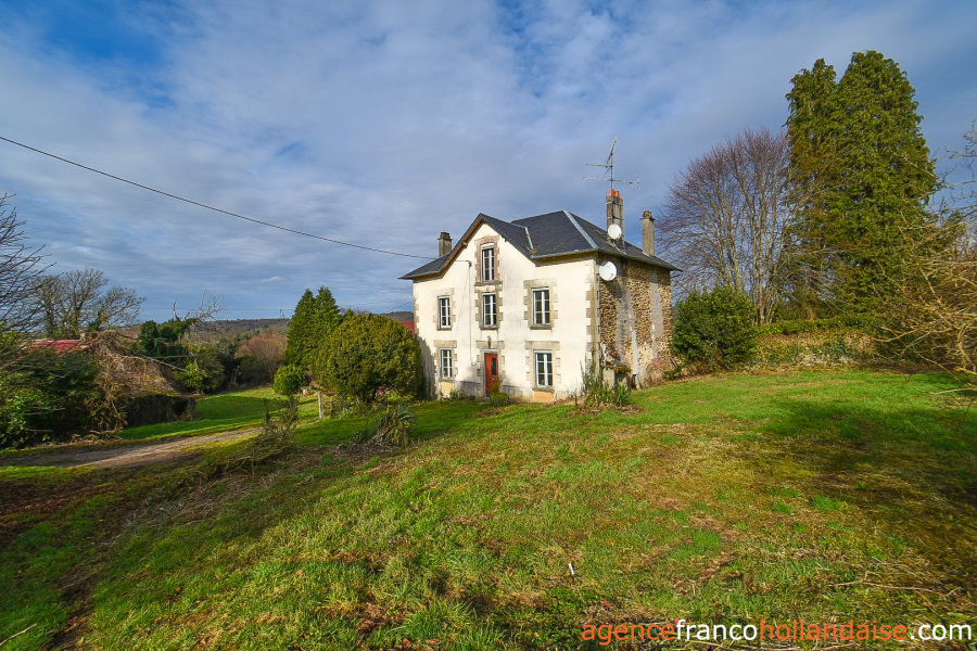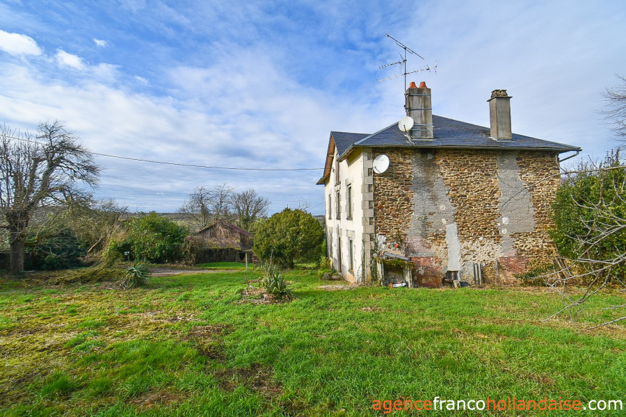 Het is een mooi vrijstaand huis met meer karakter dan de boerderijen die we meestal in de Limousin zien. De gepleisterde voorgevel en karakteristieke “chien assis” (dakkapellen), zijn typische kenmerken voor gebouwen uit de jaren 1920-1930, Het huis beschikt op de begane grond uit een centrale hal met aan de linkerzijde een woonkamer met tegelvloer en kachel (ca. 31,5 m²). Aan de rechterzijde een keuken (ca. 16,5 m²) een betonnen vloer met open haard en een houtkachel voor de CV. In het verlengde van deze kamer ligt een eetkamer (ca. 14,5 m²) met de karakteristieke mozaïektegels. In de hal is een toilet en een trap naar de kelder (ca. 13 m²).