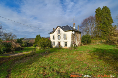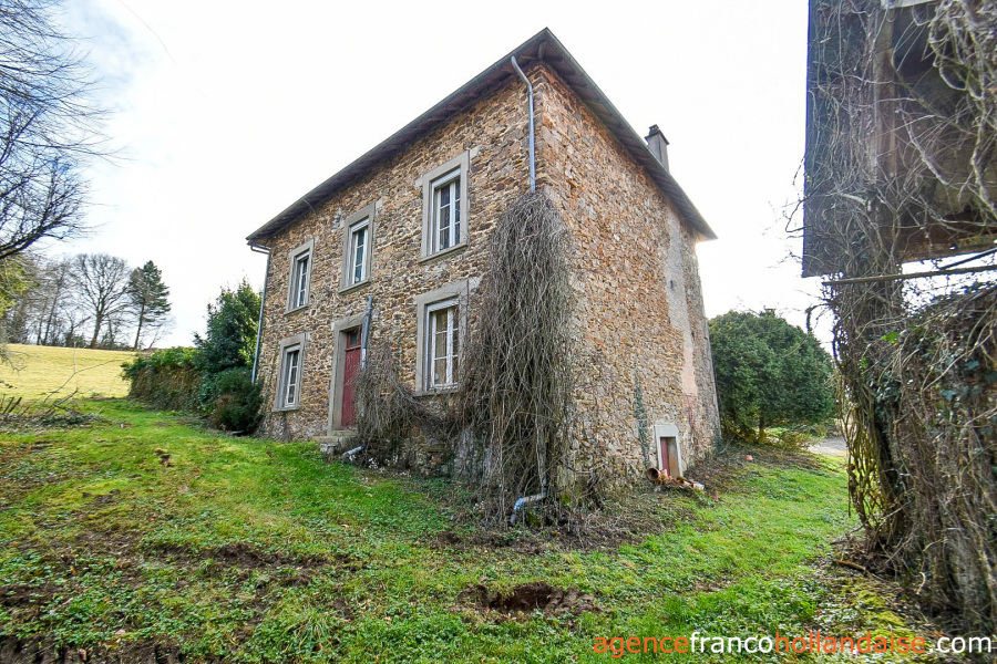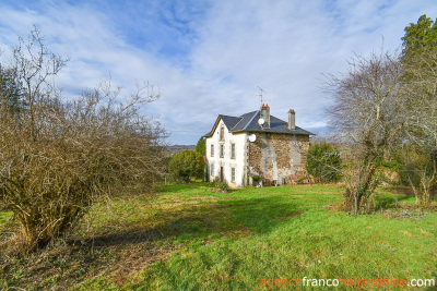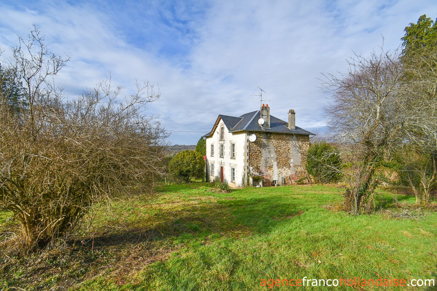 Dit landelijke gelegen stenen ensemble ligt aan het einde van een doodlopend gehucht, in het midden van een groot heuvelachtig terrein met bomen, bijna 4 hectare met bron en fontein en een prachtig uitzicht op de omliggende heuvels. En dat op slechts 10 minuten van de dorpen Châteauneuf-la-Forêt, 15 minuten van Eymoutiers en ongeveer 35 minuten van het centrum van de stad Limoges. Het ‘maison de maître’ uit 1925 biedt 160 m² woonoppervlakte, twee oude huizen uit de 19e eeuw met een open haard en een broodoven, een schuur, een schaapskooi, een varkensstal en een grote hangar met stalling. Een bezichtiging waard!