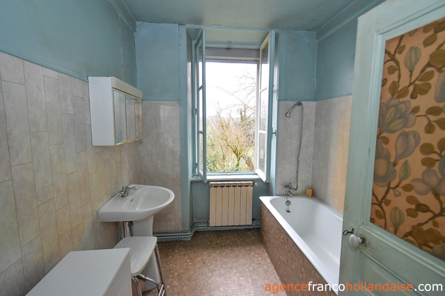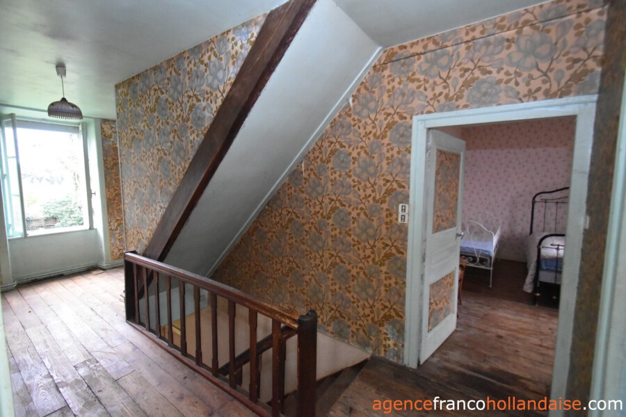Op de 1e verdieping bevinden zich een centrale overloop (ca. 12 m²) en een badkamer (ca. 5 m²) met vrij uitzicht op het glooiende Limousinlandschap en 4 ruime slaapkamers met originele vloeren, twee aan de noordkant en twee aan de zuidkant (ca. 15 m², 16 m², 17 m² en 18 m²). Op de 2e verdieping een grote zolder (ca. 70 m²) met de warmwaterboiler.