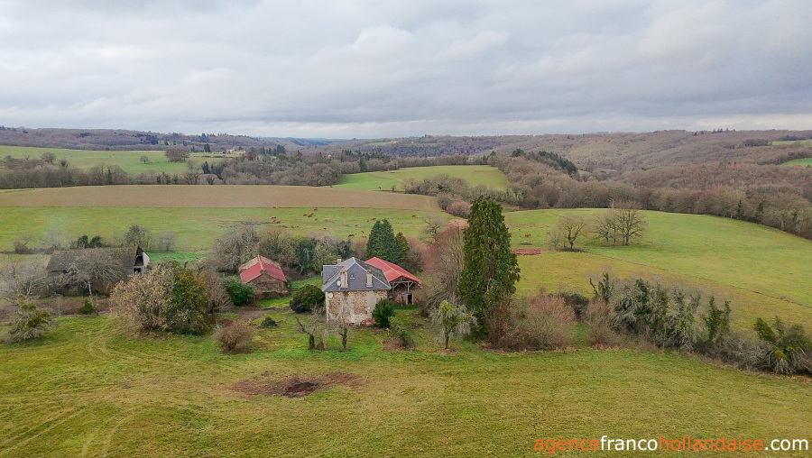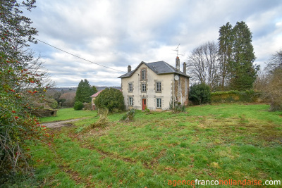 Dit landelijke gelegen stenen ensemble ligt aan het einde van een doodlopend gehucht, in het midden van een groot heuvelachtig terrein met bomen van bijna 4 hectare met bron en fontein en een prachtig uitzicht op de omliggende heuvels. En dat op slechts 10 minuten van de dorpen Châteauneuf-la-Forêt, 15 minuten van Eymoutiers en ongeveer 35 minuten van het centrum van Limoges. Het ‘maison de maître’ uit 1925 biedt 160 m² woonoppervlakte, twee oude huizen uit de 19e eeuw met een open haard en een broodoven, een schuur, een schaapskooi, een varkensstal en een grote hangar met stalling. Dit ensemble is een bezichtiging waard!