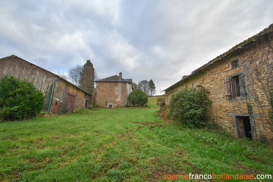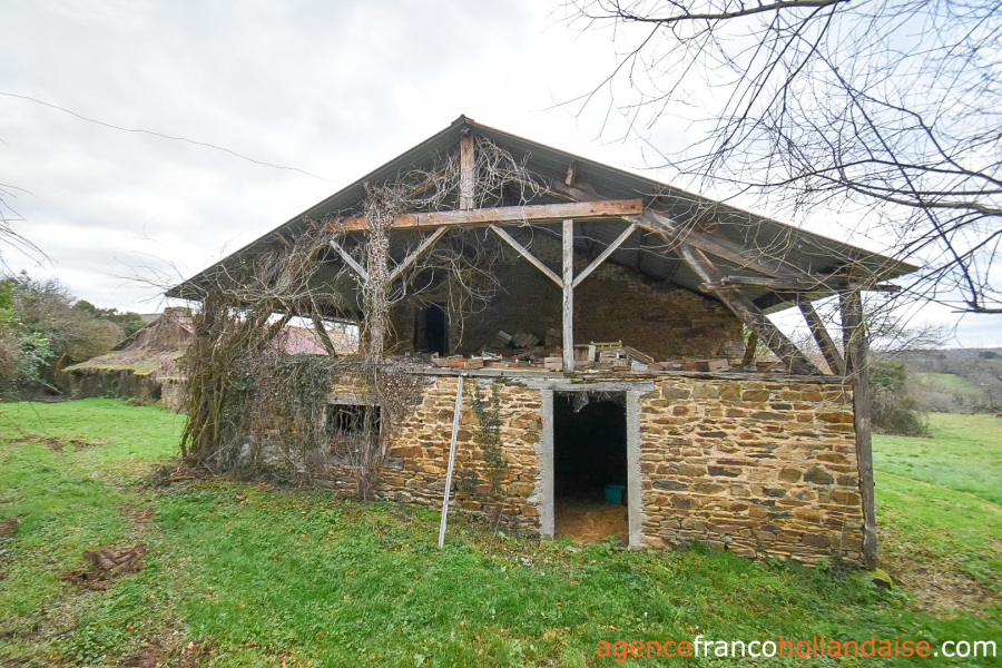Het pand ligt in een landbouwgebied, maar er is een bouwzone waar de hoofdgebouwen staan. Achteraan en aan de voorkant, maar iets verwijderd van het huis, zodat ze een soort binnenplaats vormen, staan de schuur, de schaapskooi en de twee huisjes. Ze hebben een gezamenlijke oppervlakte van ongeveer 87 m² en zijn echt in hun oorspronkelijke staat, maar hebben elk twee kamers, één met een verloren zolder en de andere met een inrichtbare zolder. Een van de huizen heeft een kelder, een open haard en een broodoven (te restaureren). Na goedkeuring zal het normaal gesproken mogelijk zijn om de twee 19e-eeuwse huizen met goede daken te verbouwen tot gîtes. De schuur/schaapskooi kan behouden blijven voor opslag of om dieren te houden (ongeveer 140 m²). Aan de overkant kunnen de stenen van een oude varkensstal worden gebruikt, die te beschadigd is om te worden behouden.