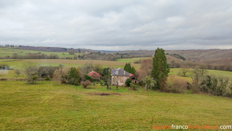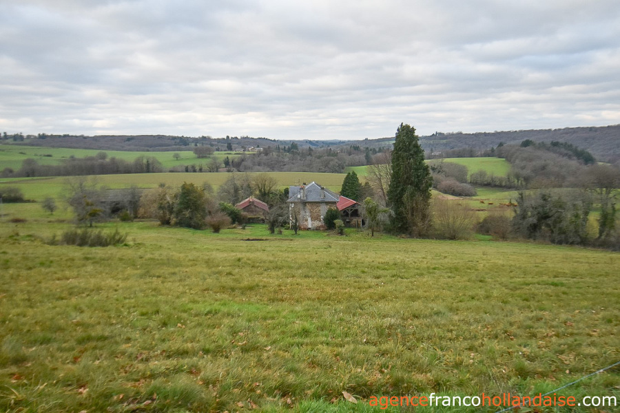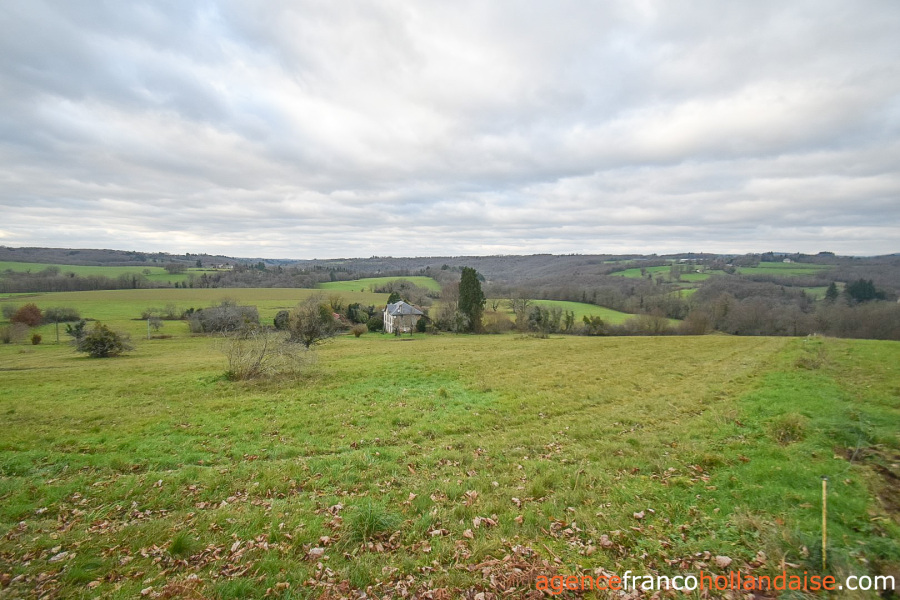 Het woonhuis ligt op ongeveer 100 meter van de weg naar het gehucht en op ongeveer 200 meter van de dichtstbijzijnde buren, maar wordt aan alle kanten beschermd door bomen en heggen. De delen van het terrein die op het noorden en westen zijn gericht, zijn vrij van bebouwing en bieden een vrij uitzicht op het heuvelachtige landschap van de Limousin. Het terrein ligt op een hoogte van ongeveer 350 m, maar loopt verder naar het westen af naar een beekje dat minder dan een kilometer verderop in de Vienne uitmondt.