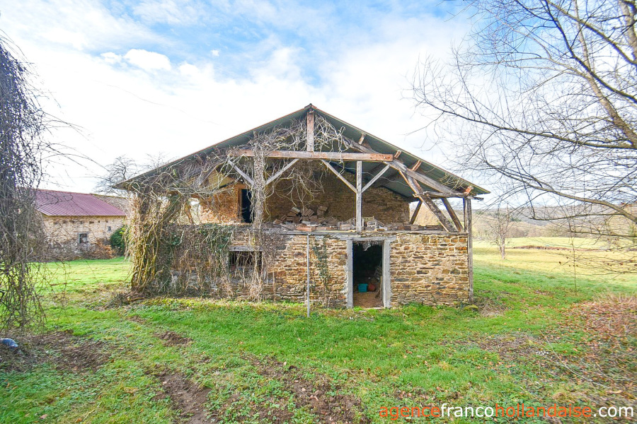 Het pand ligt in een landbouwgebied, maar er is een bouwzone waar de hoofdgebouwen staan. Achteraan en aan de voorkant, maar iets verwijderd van het huis, zodat ze een soort binnenplaats vormen, staan de schuur, de schaapskooi en de twee huisjes. Ze hebben een gezamenlijke oppervlakte van ongeveer 87 m² en zijn echt in hun oorspronkelijke staat, maar hebben elk twee kamers, één met een lage zolder en de andere met een bruikbare zolder. Een van de huizen heeft een kelder, een open haard en een broodoven (te restaureren). Na goedkeuring zal het normaal gesproken mogelijk zijn om de twee 19e-eeuwse huizen met goede daken te verbouwen tot gîtes. De schuur/schaapskooi kan behouden blijven voor opslag of om dieren te houden (ongeveer 140 m²). Aan de overkant kunnen de stenen van een oude varkensstal worden gebruikt, die te beschadigd is om te worden behouden.