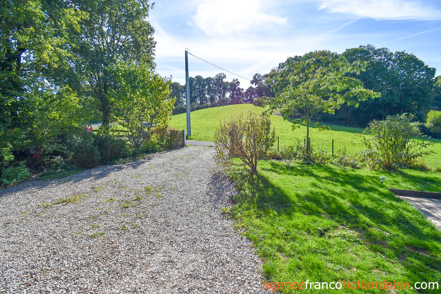 Het huis ligt midden op een volledig omheind terrein van meer dan 1200 m². Voor het huis, op het zuidwesten gelegen, biedt het houten terras een vrij uitzicht op de omliggende weiden en bossen. U kunt zelfs het ruisen horen van het beekje dat langs een aangrenzend perceel stroomt. Vlak naast het terras is een tweede betonnen terras aangelegd, speciaal bedoeld voor een opzetzwembad. De buitenlamp in retrostijl maakt duidelijk dat het hier ook heerlijk toeven is als de avond valt, zodat je nog langer van de tuin kunt genieten! Een derde terras met grind ligt in het verlengde van de oude broodoven, aan de zuidoostkant. Het heeft een houten prieel boven de tuintafel om u in de zomer tegen de felle zonnestralen te beschermen. Het tweede deel van de tuin, aan de noordoost- en noordwestkant, heeft ook een klein terras, een gazon en een bebost gedeelte. Al naar gelang de behoefte aan zon of schaduw vindt een ieder zijn plekje!