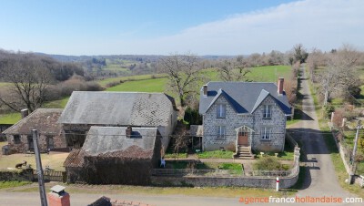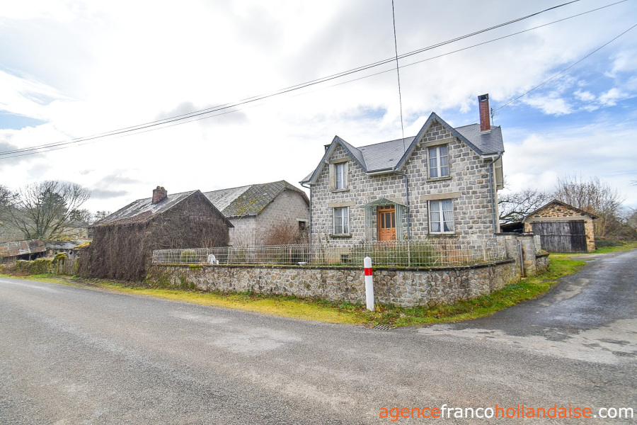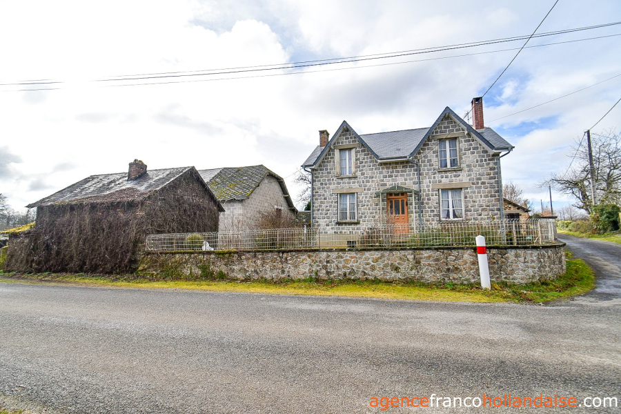 Stenen huis met 4 slaapkamers en een oppervlakte van 128 m². De twee grote “chiens assis” (dakkapellen) geven het huis een charmante uitstraling. Het huis is gelegen in een klein gehuchtje van de gemeente La Porcherie, in het uiterste zuidoosten van de Haute-Vienne.