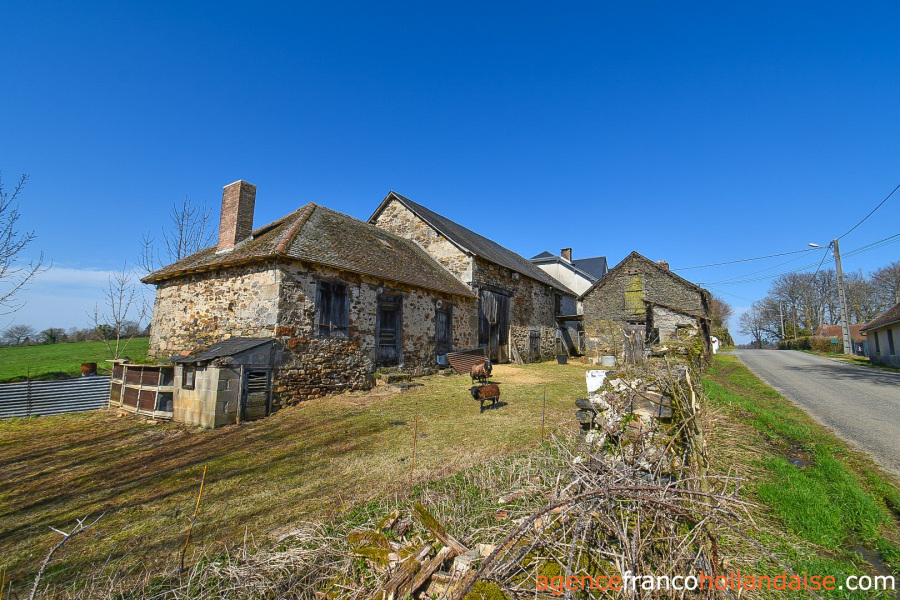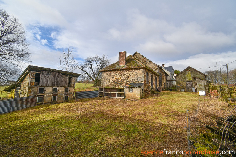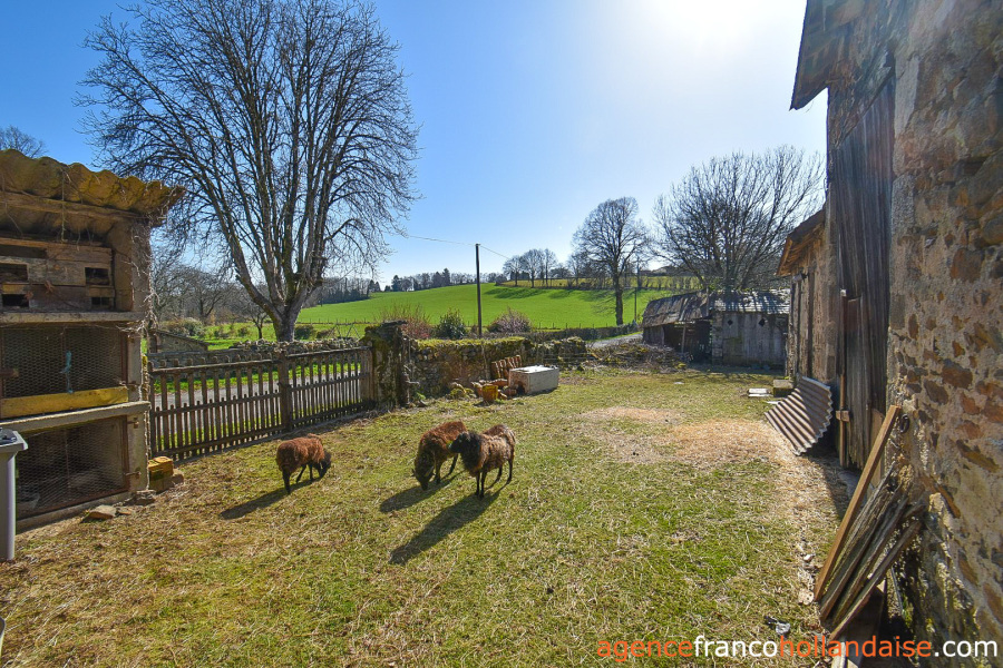 Het terrein heeft een totale oppervlakte van ongeveer 2,65 hectare, waarvan bijna 1,7 hectare rondom de gebouwen, omheind met heggen en hekken aan de westkant en met een eigen toegang. Het was bestemd voor het houden van koeien en schapen, maar met is ook geschikt te maken voor ezels en/of paarden. Bij dit huis hoort ook een perceel volgroeid loofbos van bijna een hectare op 5 minuten afstand van het huis. Handig voor de houtkachel(s)!