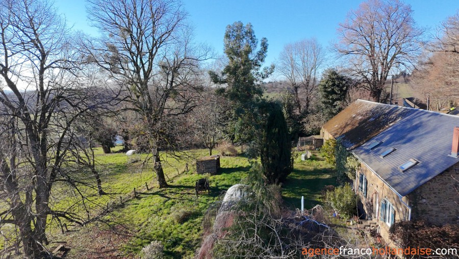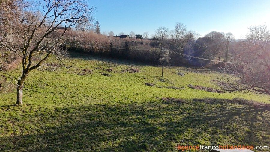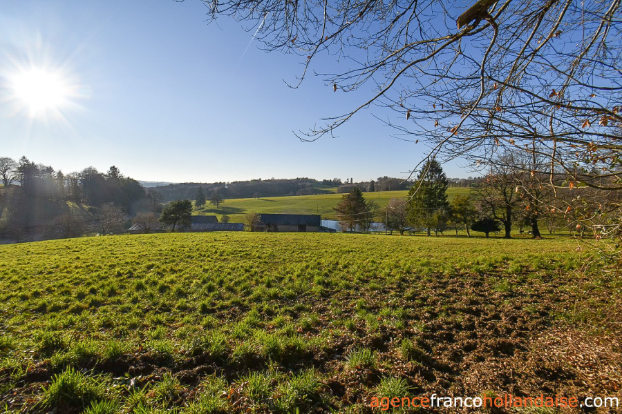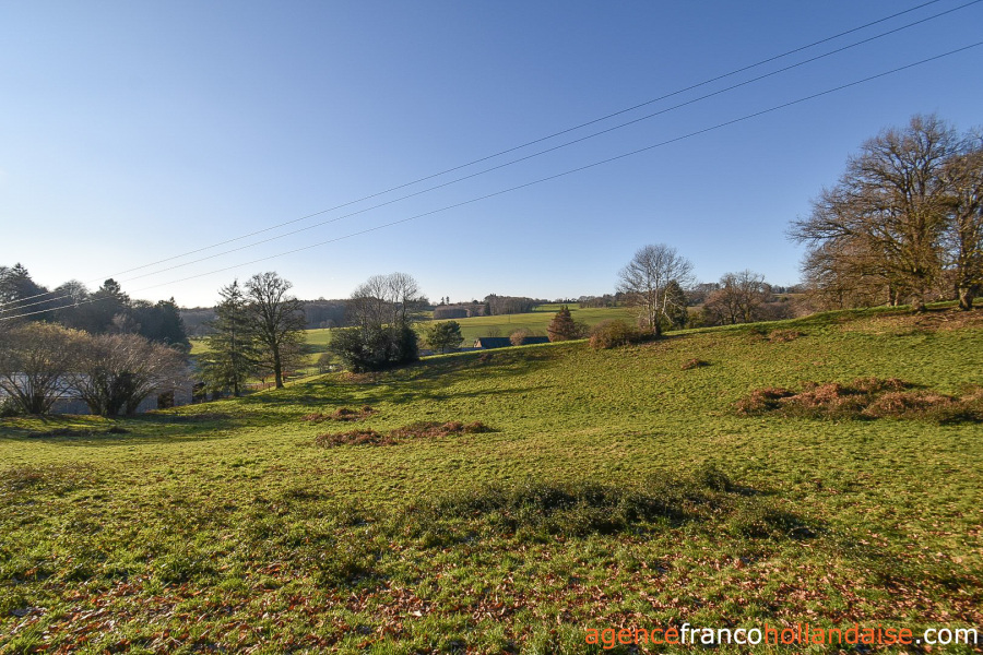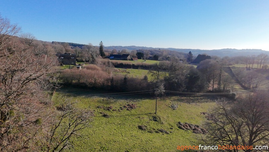 Het gehuchtje waarvan het pand deel uitmaakt, ligt langs een kleine weg op een heuvel. Elke eigenaar kan ongestoord van hetzelfde uitzicht te genieten. Talrijke grote bomen zorgen voor de privacy die iedereen nodig heeft. De gebouwen liggen aan de noordelijke rand van het terrein. Dit heeft een totale oppervlakte van 1,22 ha en strekt zich uit ten zuiden van het huis en is bijna volledig omheind. Er is een tweede omheining rond de gebouwen die de omringende tuin vormt. Daar is een kas geïnstalleerd en een grote lindeboom zorgt voor welkome schaduw in het zomerseizoen. Het uitzicht op de weilanden van de Limousin is prachtig! Lager op de heuvel is een kleine boerderij te zien.