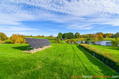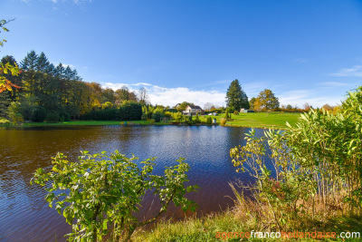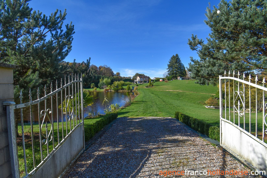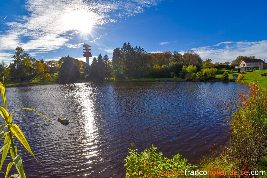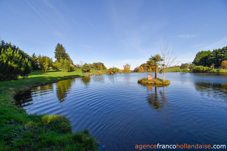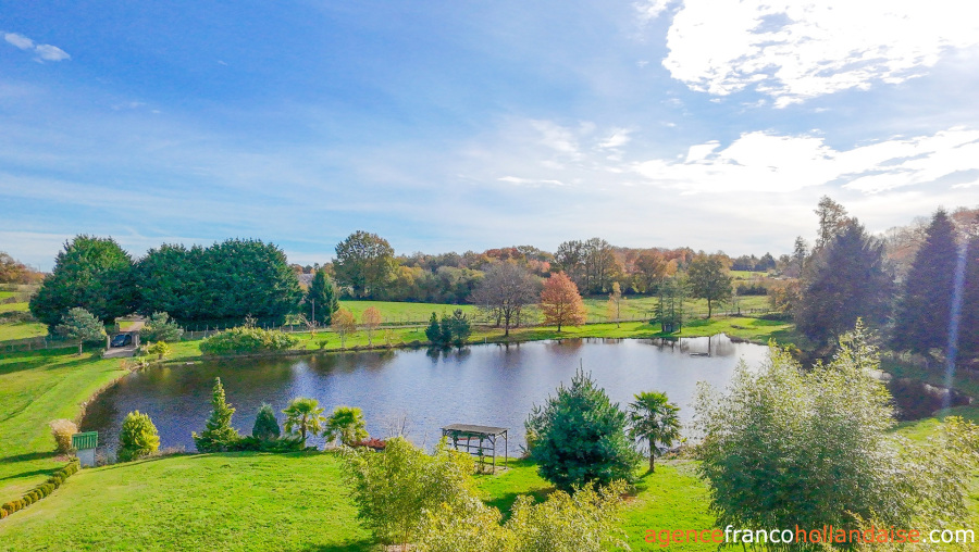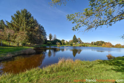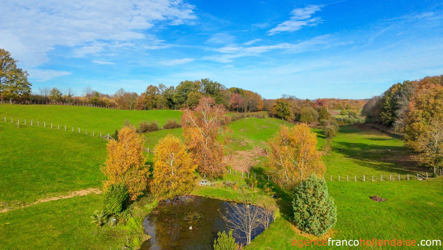 Er zijn 4 garages, waarvan er 3 aan het huis grenzen, met een totale oppervlakte van meer dan 120 m². En dan zijn er nog diverse kleine schuurtjes verspreid over het terrein. U kunt uw eigen dieren houden om het volledig omheinde perceel te onderhouden. Een grote vijver van 4600 m² en een poel, beide gevoed door verschillende bronnen, worden gescheiden door de oprit aan de oostkant. Er is ook een tweede toegang aan de noordwestkant, dichter bij de gebouwen. Er is een moestuin bij de poel en verschillende plekjes om te zitten en de natuur te bewonderen.