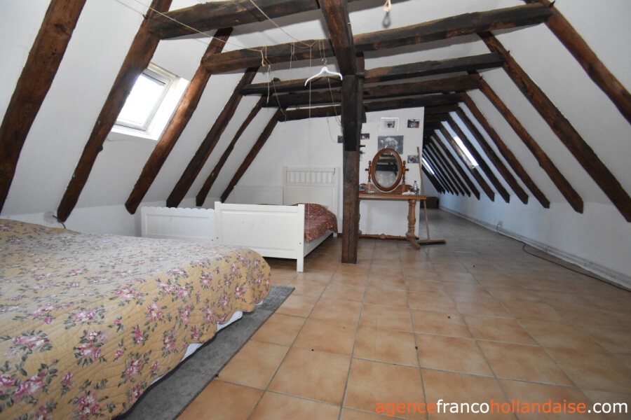 Op de eerste verdieping zijn twee slaapkamer en een overloop waar ruimte is om nog een slaapkamer te maken. Er is een badkamer met ligbad. De originele balken zijn in zicht gebleven en door de dakramen komt veel licht.