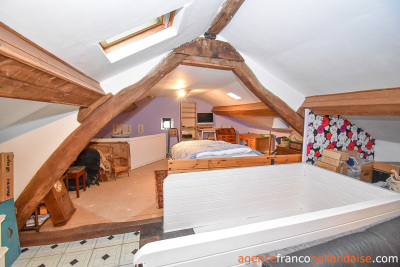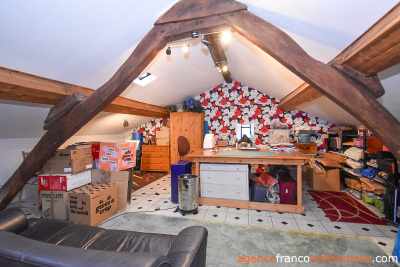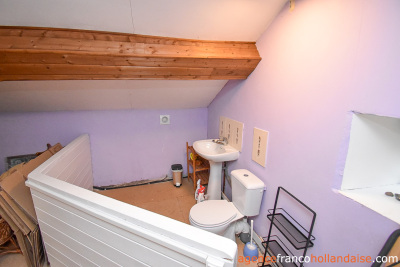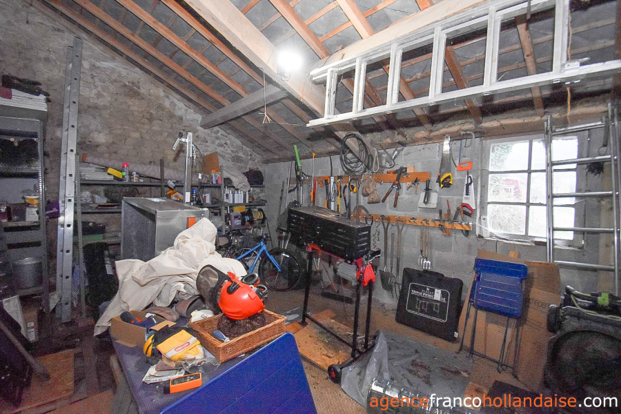 Het atelier/werkplaats (ca. 23,5 m²) op de verdieping is vanuit de bijkeuken met een vaste ladder te bereiken. De ruimte is niet verwarmd, maar het plafond is geïsoleerd.