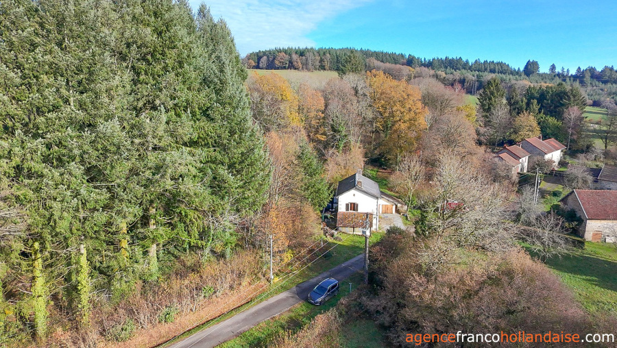 Een charmant huis ‘en belles pierres’ met vier slaapkamers en een woonoppervlakte van 168 m² met een fraaie schouw en mooie balken, gelegen aan de rand van een rustig gehucht, tussen bossen en weiden. Langs een smal gehuchtweggetje, ver weg van de drukte van de stad, kunnen natuurliefhebbers vanuit het huis urenlang wandelen in de meest zuivere lucht van heel Frankrijk.
