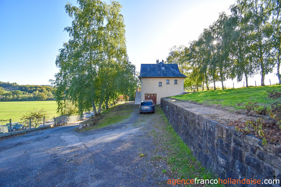 Het huis is bereikbaar via een privéweg vanaf de weg die lager gelegen voor het huis langsloopt. De buurman heeft recht van overpad. Het terrein loopt schuin af, anders zou er niet zo'n mooi uitzicht zijn.
