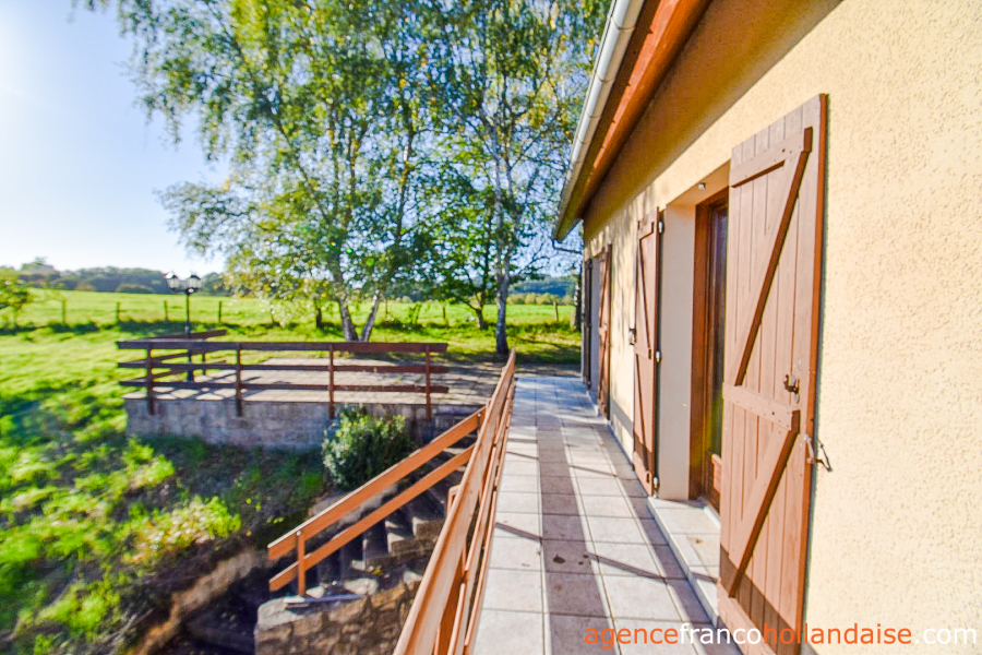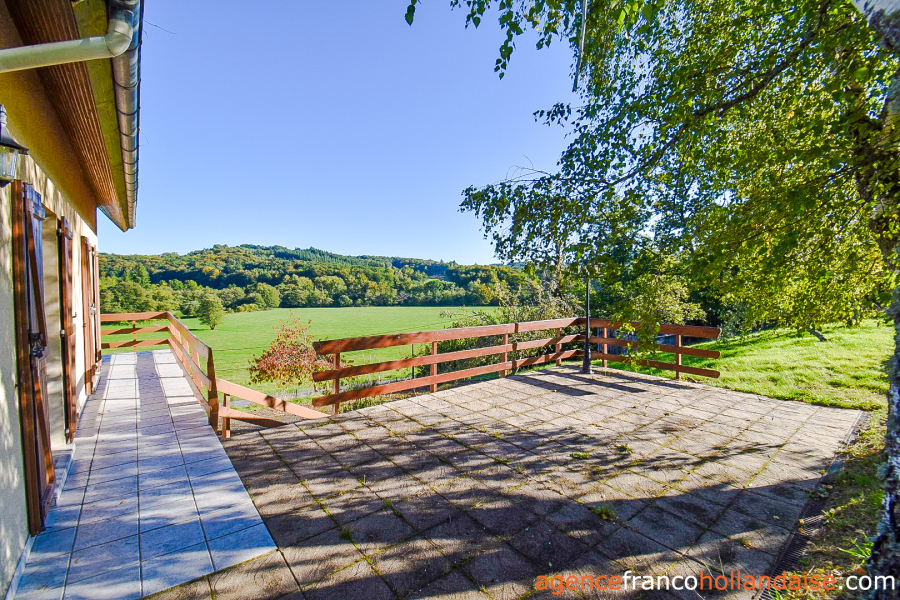 Dit huis ligt aan de rand van het dorp Nedde, op 10 minuten ten oosten van het marktstadje Eymoutiers en 15 minuten ten zuiden van het grote recreatiemeer Lac de Vassivière. Het in 1980 is gebouwd en ligt op een geweldige plek met een prachtig uitzicht over het glooiende Limousinlandschap.