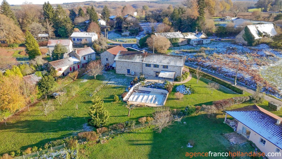 Het pand ligt op de heuvels van een dorp met alle voorzieningen en ongeveer 1.500 inwoners, op ongeveer 35 minuten van het centrum van Limoges en op minder dan 15 minuten van het pittoreske stadje Eymoutiers, aan de oever van de Vienne. Er zijn ook twee treinstations op minder dan 15 minuten afstand, waardoor u Limoges in ongeveer een half uur kunt bereiken. Brive-la-Gaillarde ligt op een uur rijden.