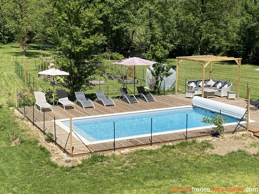 Net buiten het charmante dorp Excideuil, aan het schilderachtige riviertje de Loue, ligt deze karaktervolle voormalige watermolen. Tot 1960 in gebruik voor de productie van papier, staal en meel, is dit bijzondere pand met veel zorg en respect voor authentieke elementen volledig gerenoveerd tot een royale en comfortabele woning met gastenverblijf.